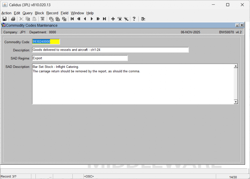 Commodity Code Maintenance