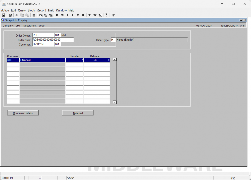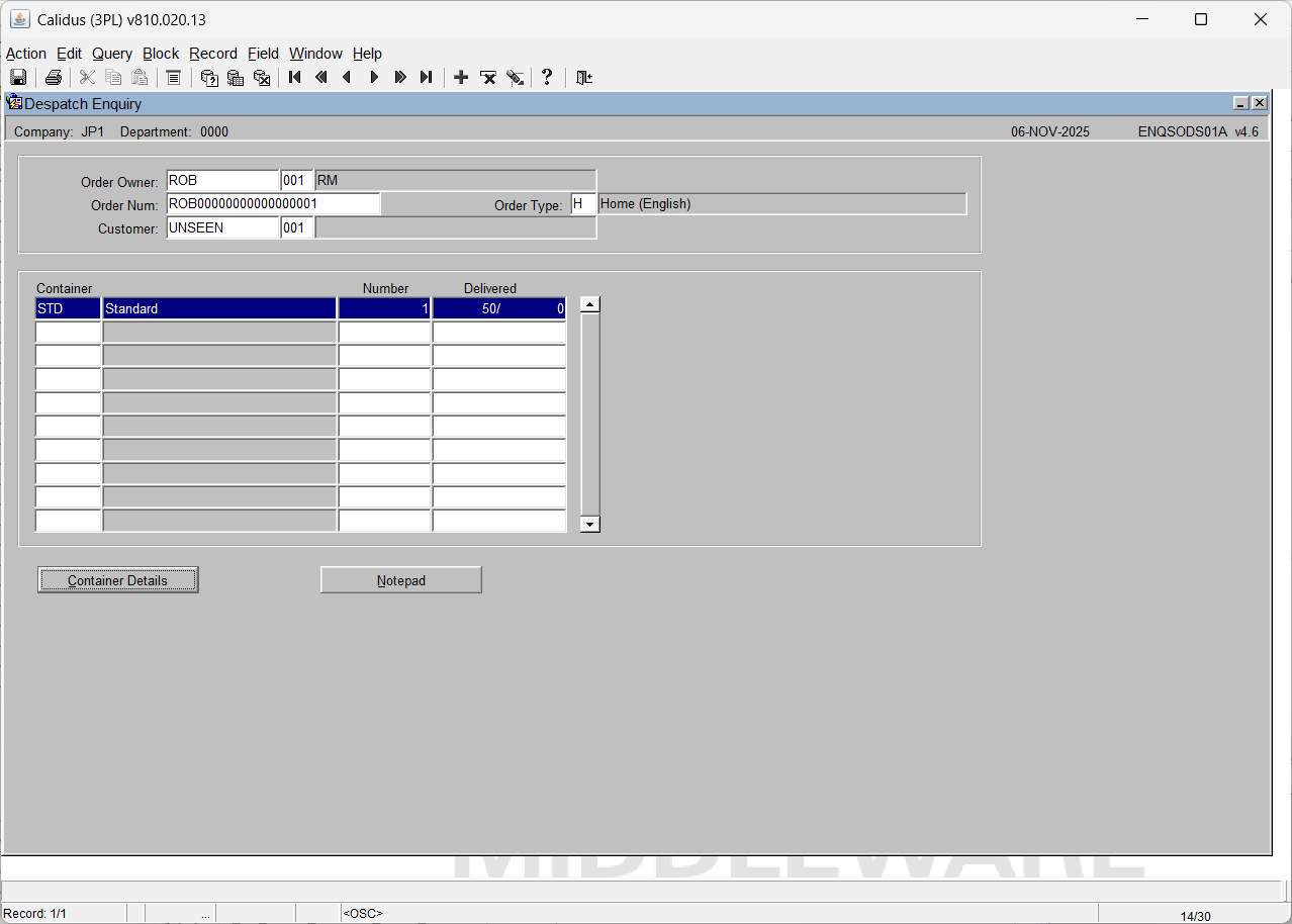 Despatch Enquiry Screen